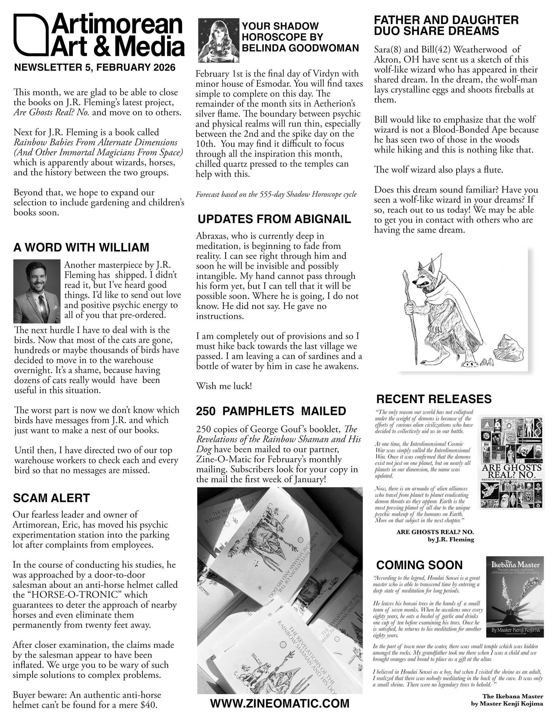 Get the monthly Artimorean newsletter delivered right to your door! Read about upcoming releases, get your shadow horoscope, and see communication from fans.
